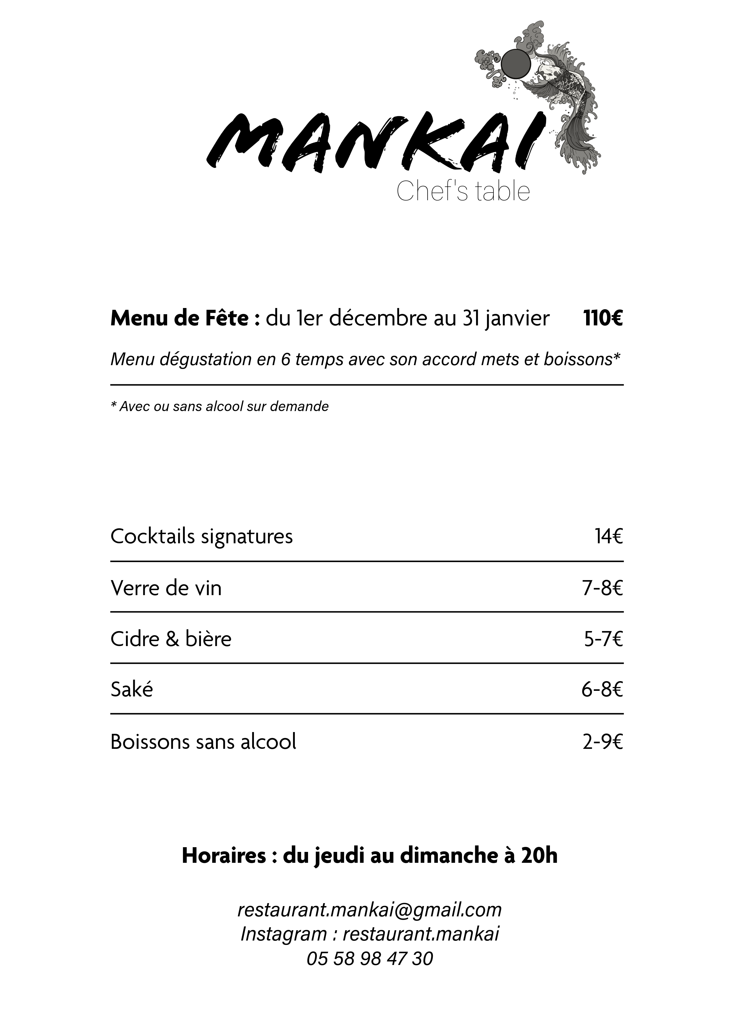 Le nom MANKAI représente la pleine floraison des cerisiers en fleurs en japonais, une période éphémère mais d'une grande beauté.